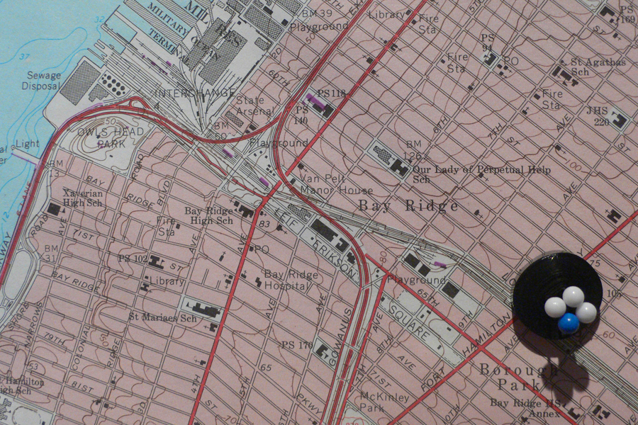 In this work, each of three volunteers follows instructions asking them to circle a block in the neighborhood of the gallery thirty-three times. Using a three-minute endless loop cassette in a dictaphone cassette recorder, the volunteers are instructed to listen continuously, while making recordings at regular intervals based on predetermined cycles of counted numbers. When they are finished walking (and recording their walk), they are instructed to listen back to the fragmented recording of their experience. They then unspool the cassette and wrap the cassette tape around pins pushed into a US Geological survey map of the area surrounding the gallery. The pins are pushed into the corners that mark the block where they walked. The map and tape-marked paths are then exhibited alongside the instructions and the three empty cassette tape housings. From the dialectic of an irretrievable action (the gallery attendee being aware that the work caused the preparator to have listened) and an unplayable recording (the tape both marking the path and itself holding a form of listening), memory becomes suspended in the space of imagination, intangible but imaginable through the process of assemblage undertaken by the viewer/reader.